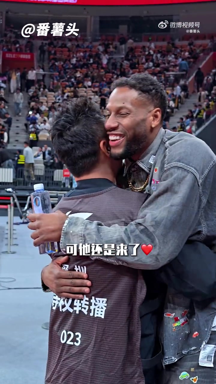 老熟人来了!威姆斯观战南粤德比 和老队友们一一拥抱寒暄!