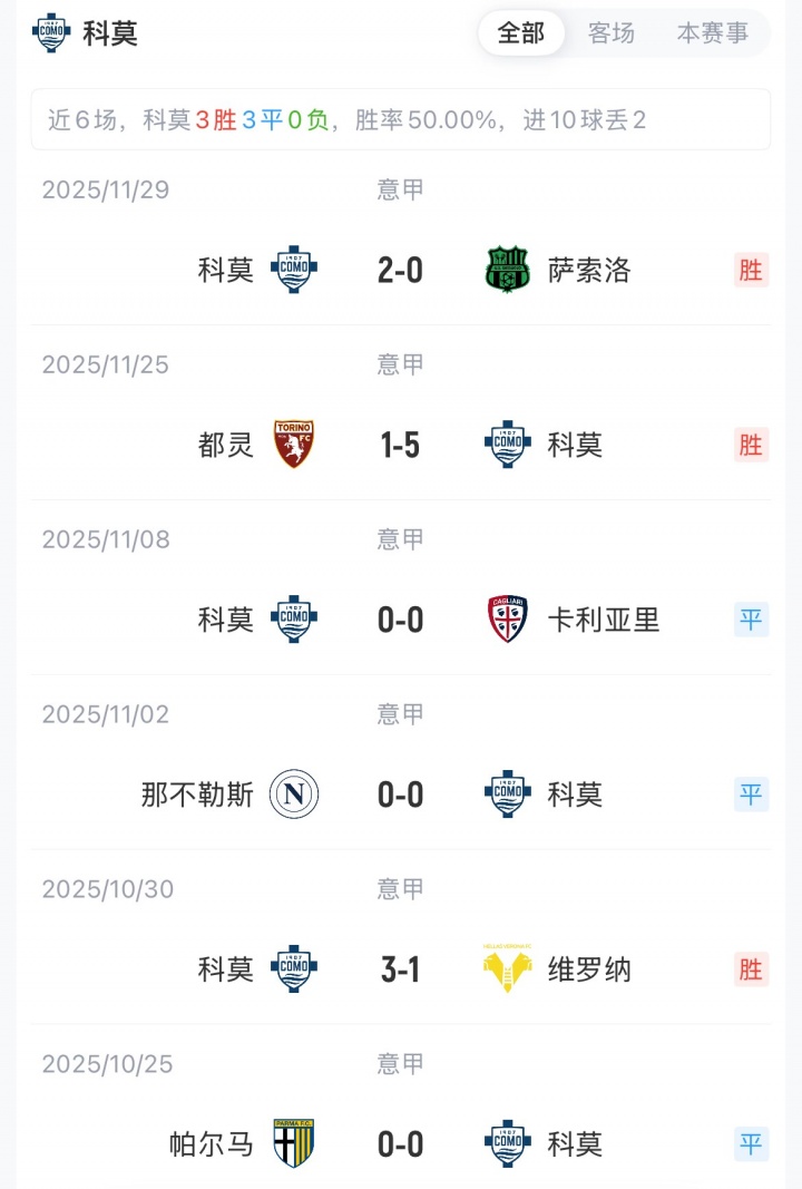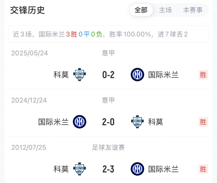 国米暂以27分排名意甲第三,科莫24分暂排第五。