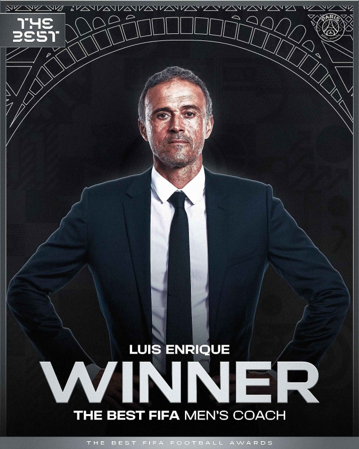 官方:恩里克荣膺FIFA年度最佳教练,击败斯洛特 弗里克 阿尔特塔